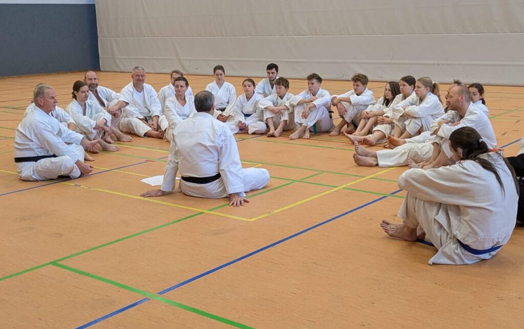 Die drei Karate-Trainingseinheiten am Samstag und Sonntag standen ganz im Zeichen der Kata Sochin – einer Meister-Kata, deren Name „Stärke und Ruhe“ bedeutet. Langsame, kraftvolle Bewegungen wechseln sich hier mit schnellen, explosiven Sequenzen ab. Charakteristisch ist die fast durchgängig tiefe und stabile Sochin-Dachi-Stellung.