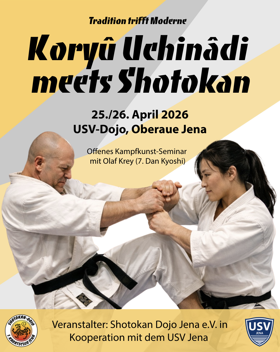 Offenes Kampfkunst-Seminar mit Olaf Krey (7. Dan Kyoshi) am 25./26. April 2026, USV-Dojo, Oberaue Jena Koryû Uchinâdi (KU) ist eine von Patrick McCarthy entwickelte, moderne Inter-pretation historischer Kampfkünste, die … Weiterlesen…
